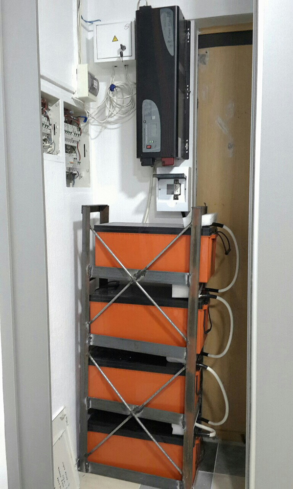 Система встановлена в технічному приміщенні будинку та підключена до основного електрощита через автоматичну систему перемикання. У разі зникнення електроенергії перемикання на акумулятори відбувається миттєво — без перерв у живленні та без втручання користувача.