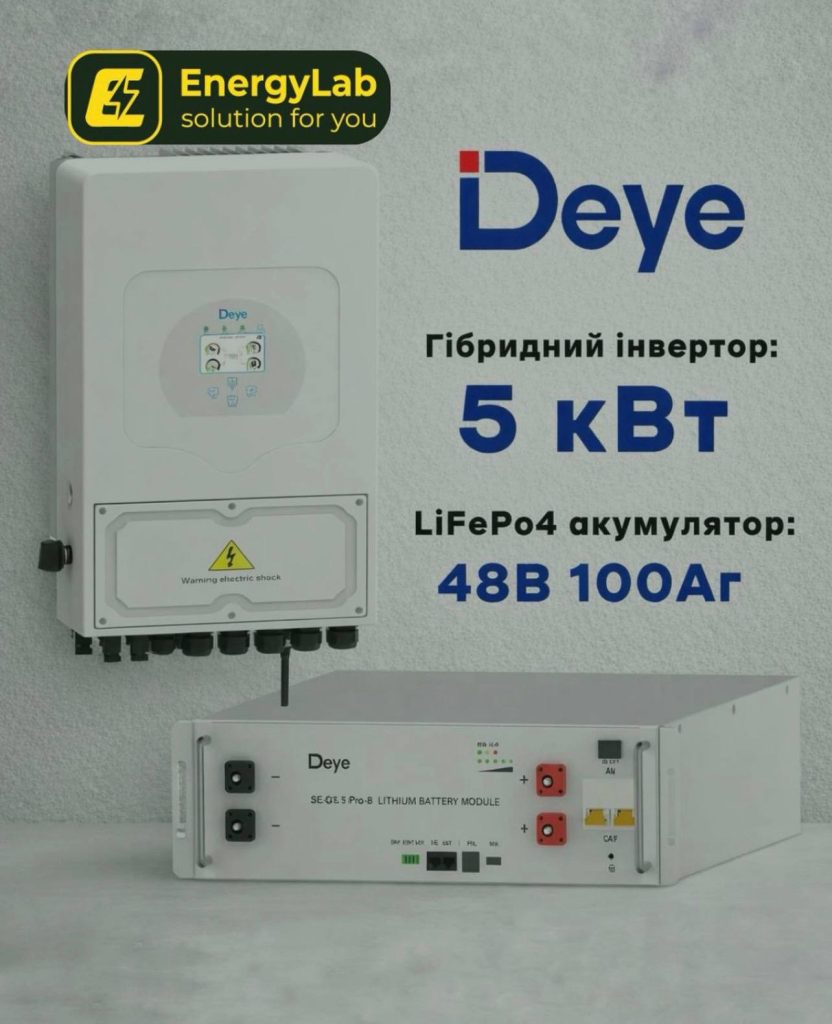 - Гібридний інвертор Deye потужністю 5 кВт